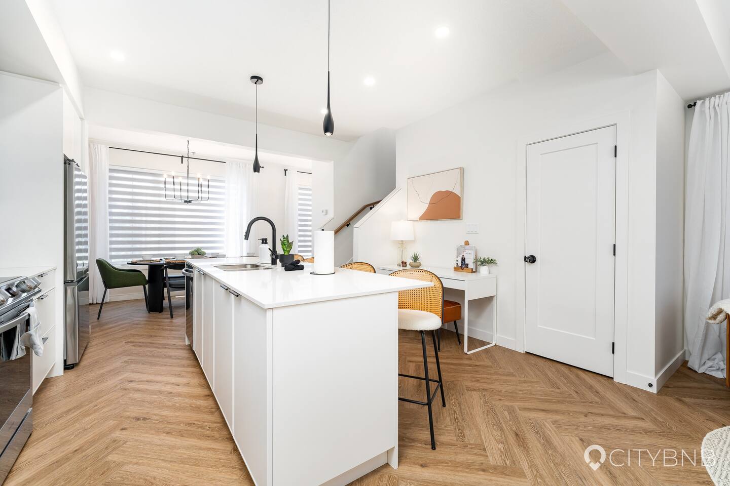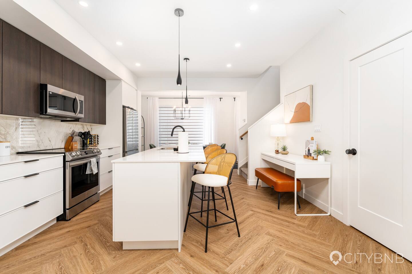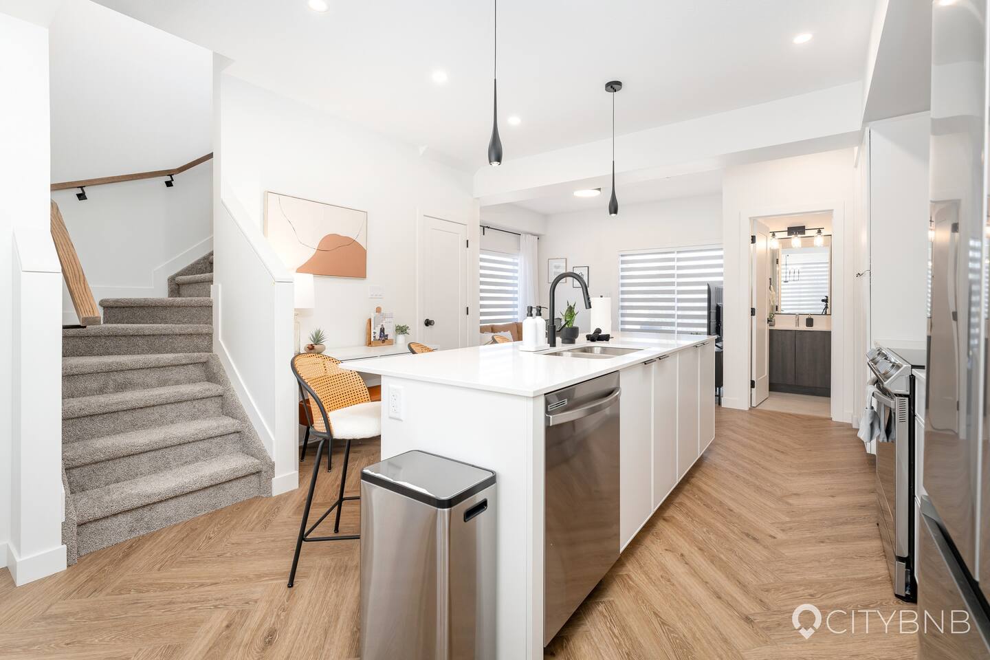 - Entire main and upper floors of the townhouse - Smart lock entry — door code provided 2 days before arrival Note: There is a separate legal basement suite with a private entrance (no shared spaces).