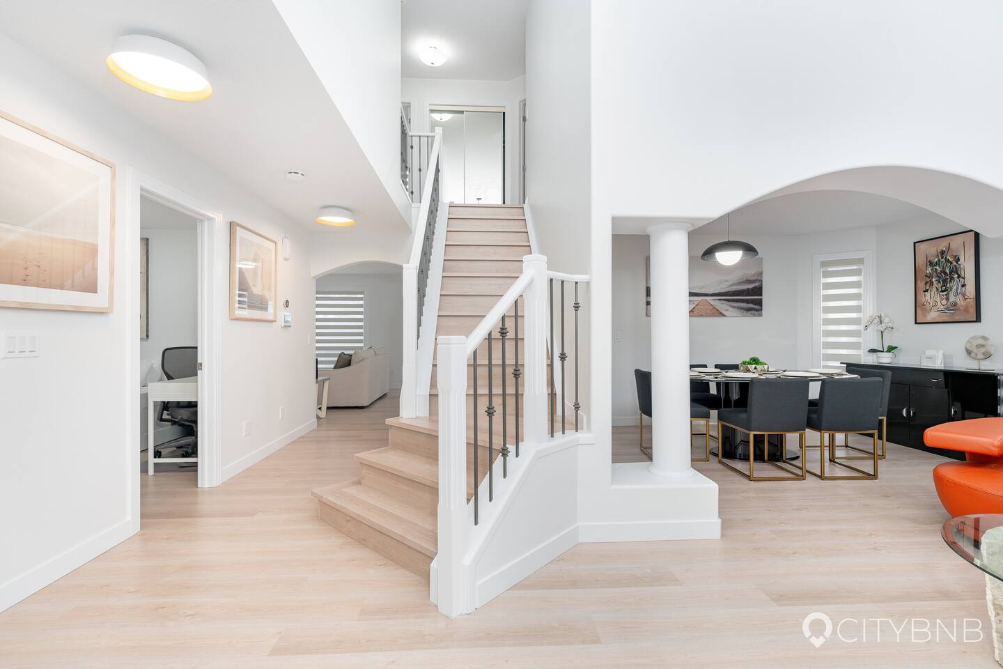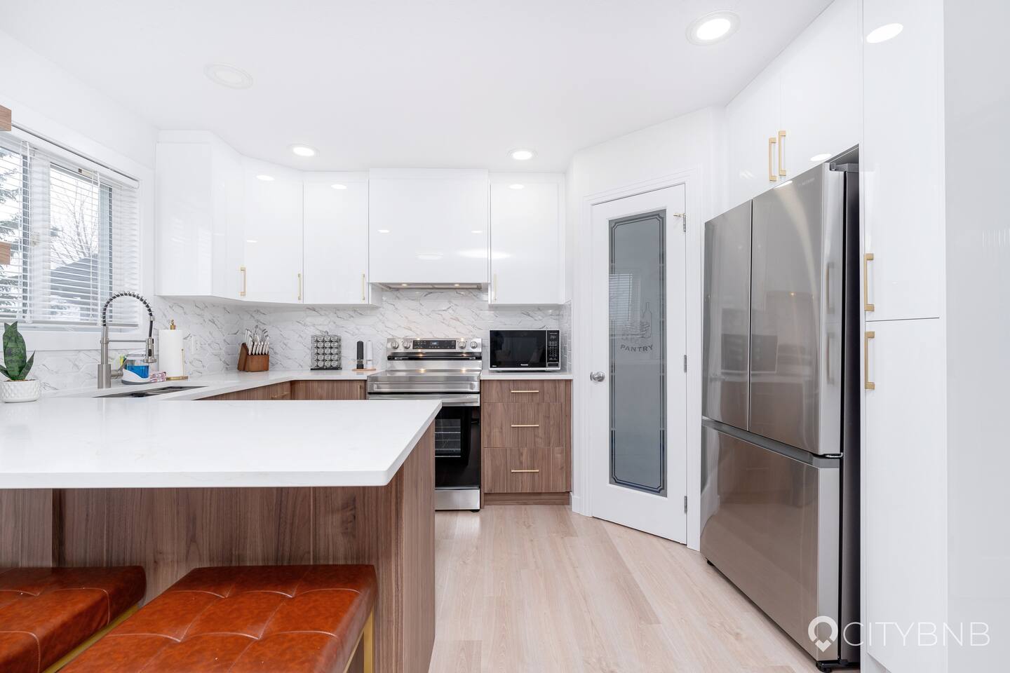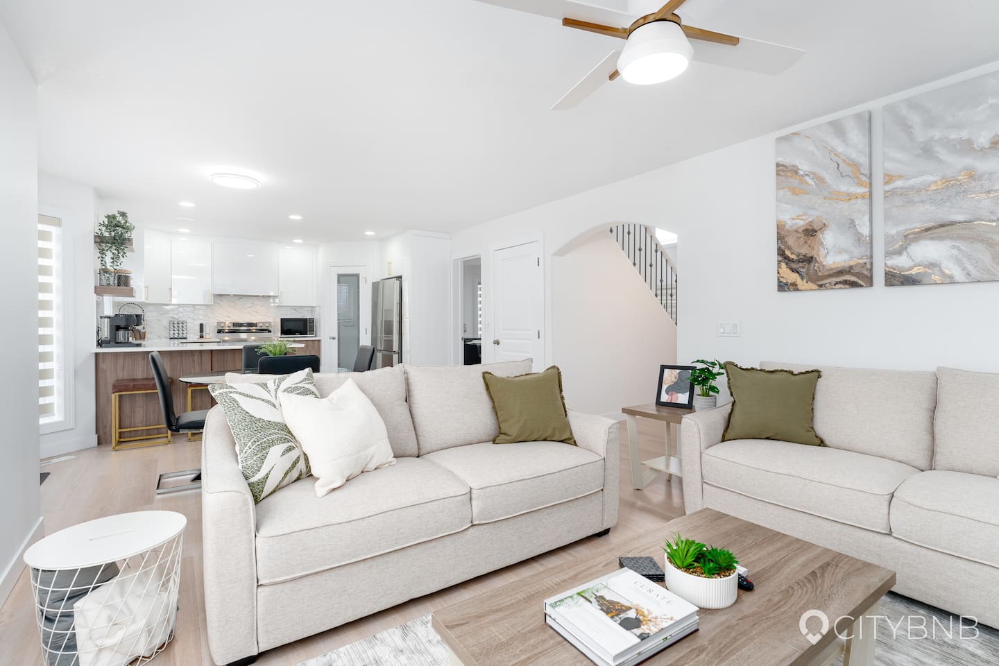 Guests have full access to the main floor, second floor, basement, garage, and fenced backyard.