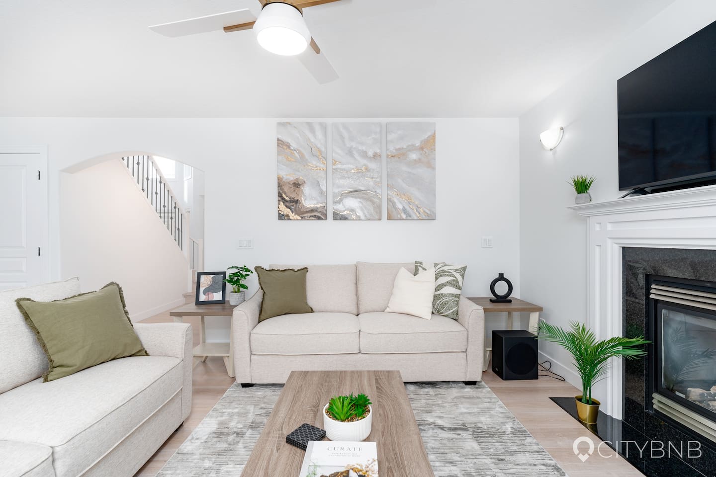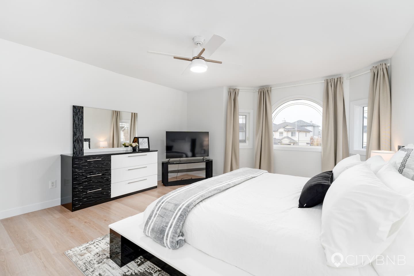 🛏 Sleeps 12 - Master bedroom with King bed & ensuite - 4 Queen bedrooms - 1 main-floor bedroom with daybed (converts to double) - 3 full bathrooms + 1 half bath 🌟 Features - 3 living rooms for everyone to spread out - Central A/C - High-speed 1GB Telus fibre internet - Fully stocked kitchen with coffee, tea, drip + Keurig machines, toaster, kettle & cooking essentials - Washer & dryer - Double attached garage + driveway parking - Fully fenced backyard (furniture arriving spring) - Dog-friendly (with approval) - Pack ’n Play & high chair for families 📍 Location - 15 min to West Edmonton Mall - 20 min to Rogers Place / Downtown - 22 min to Edmonton Airport 🐾 Dog Policy We welcome one approved dog per stay. Please be mindful of furniture and linens — any damage or excessive cleaning will be charged accordingly. - $75 pet fee applies