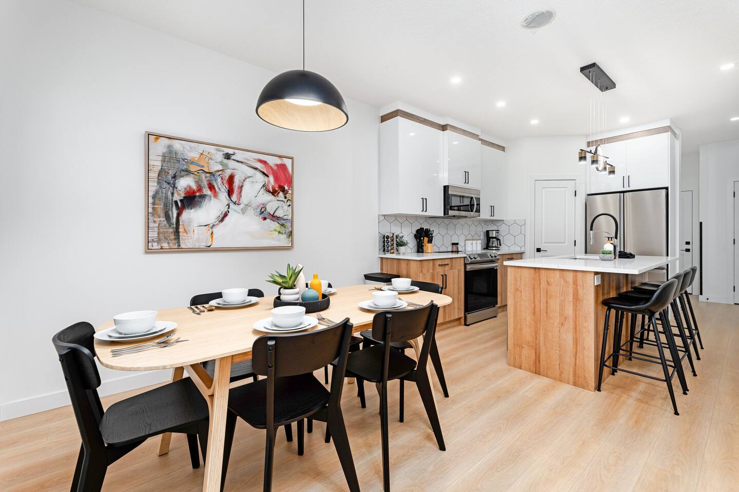 🛏 Sleeps 8 - 3 bedrooms: 1 King, 2 Queens - Bonus room with Queen sofa bed - 2.5 bathrooms - Central A/C 🌟 Features - Fully stocked kitchen with drip coffee machine, blender, toaster, pots, pans & utensils - 3 Smart TVs (living room, bonus room, master bedroom) - High-speed Wi-Fi - Double attached garage + driveway parking - Family-friendly space with room to gather and relax 📍 Location - 3 min to Grey Nuns Hospital - Close to shopping, restaurants & parks - Easy access to Whitemud & Anthony Henday